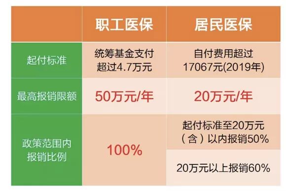 需要注意的是:职工基本医保支付限额4万7千元;居民基本医保支付限额一档8万元,二档12万元。